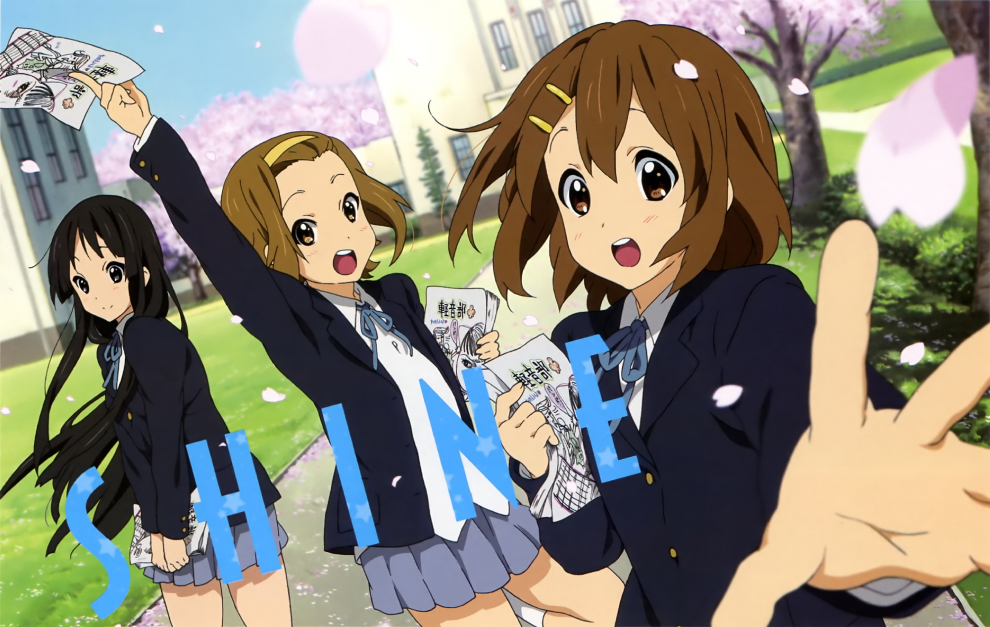 Скачать обои для рабочего стола K-On! - Девочки раздают листовки и фото