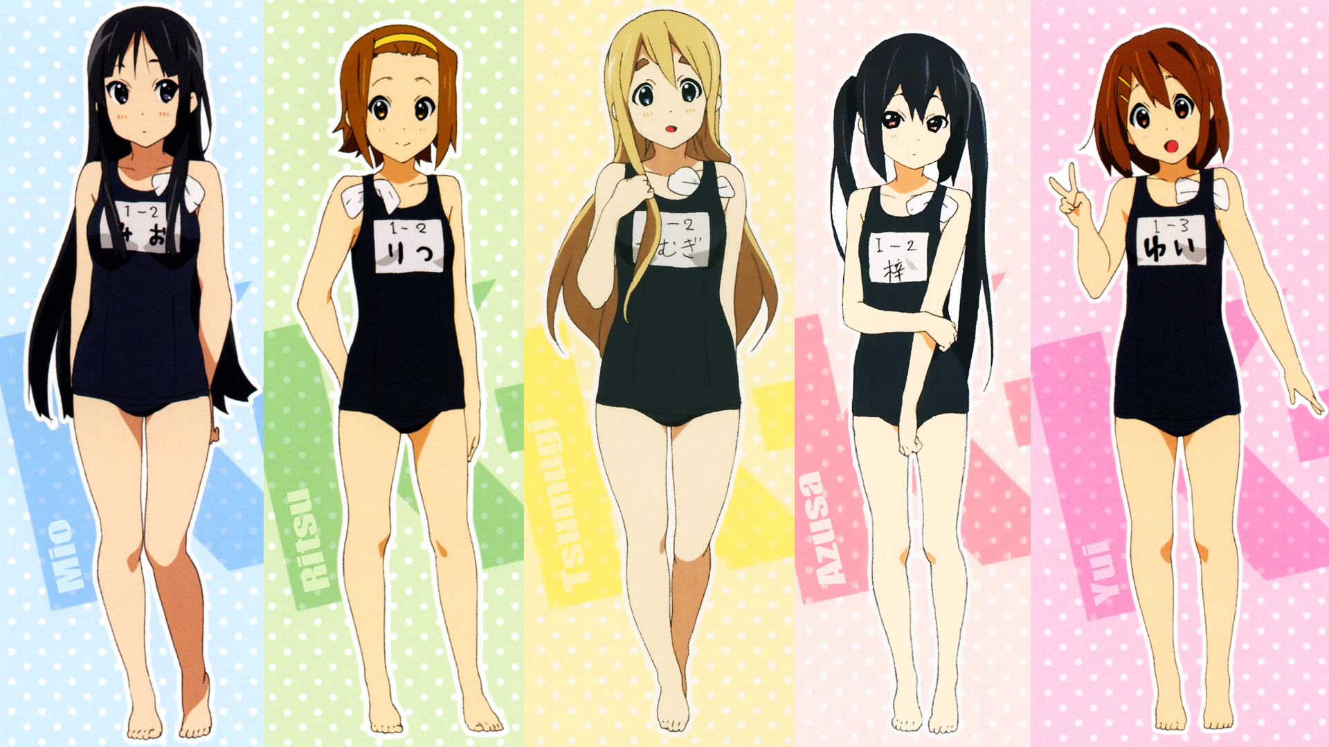 Скачать обои для рабочего стола K-On! - Девочки в школных купальниках и фото