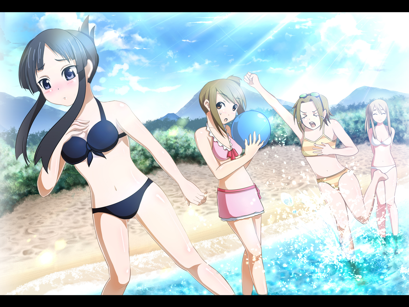 Скачать обои для рабочего стола K-On - Девушки купаются на пляже и фото