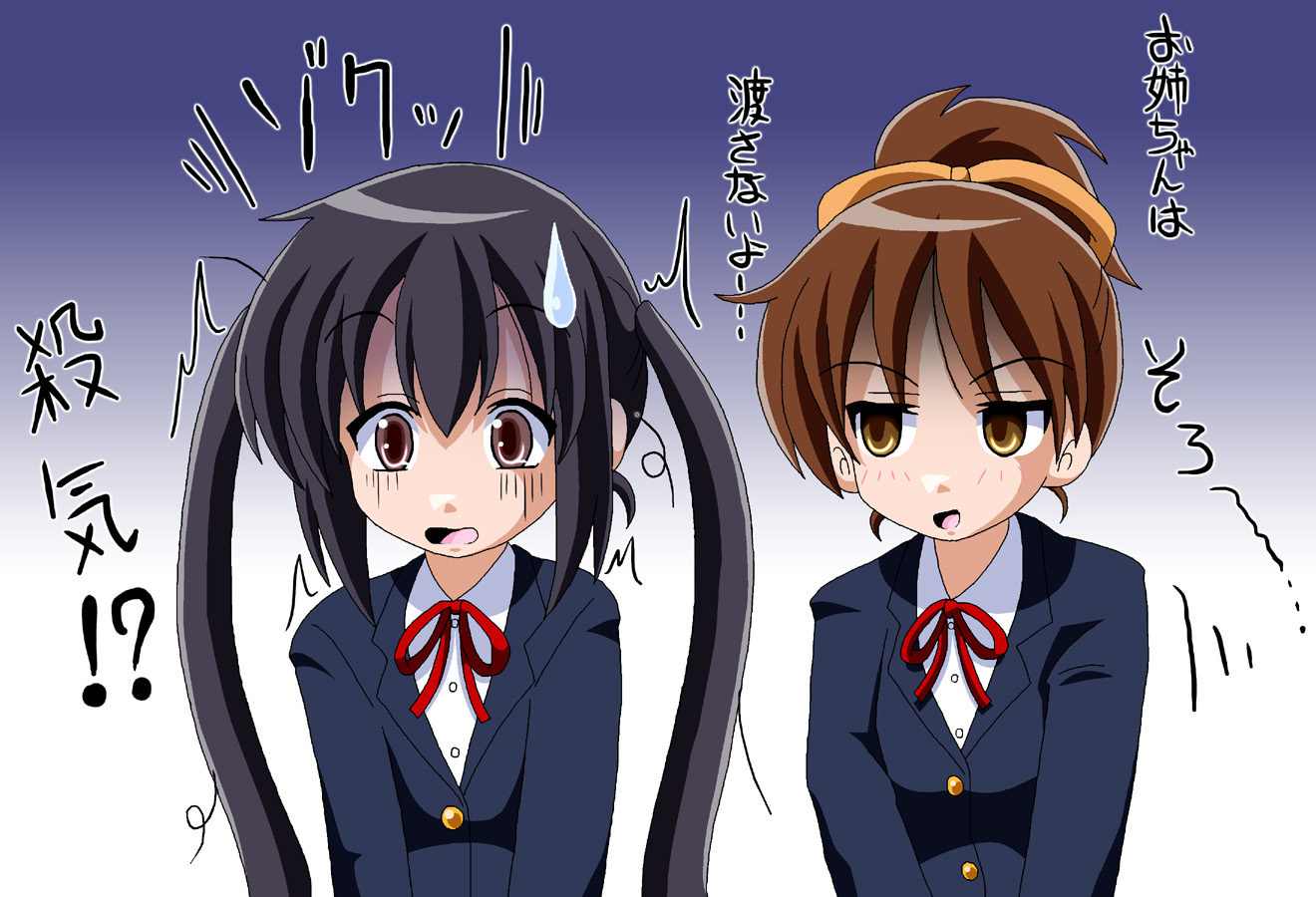 Скачать обои для рабочего стола K-On! - Две девушки в шоке и фото