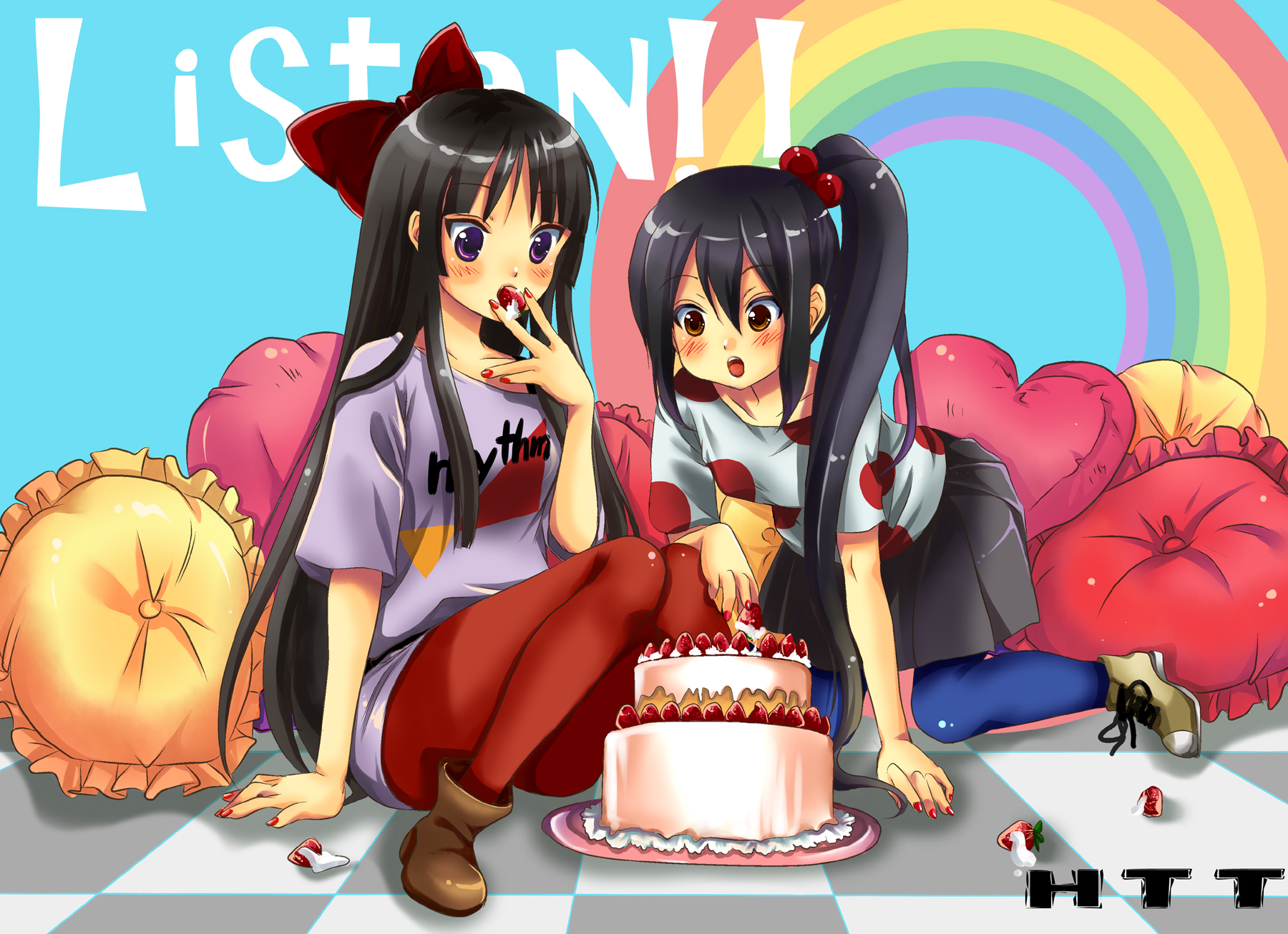 Похожие обои на K-On! - Мио и Азуса на фоне радуги: