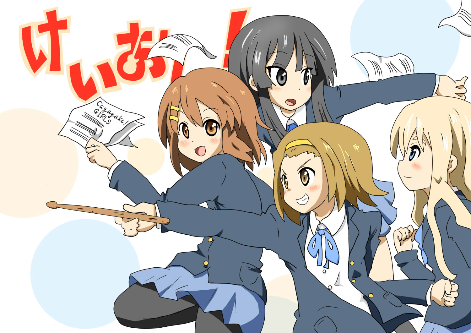Обои K-On! - Мио, Юи, Цумуги, Рицу с голубыми кругами