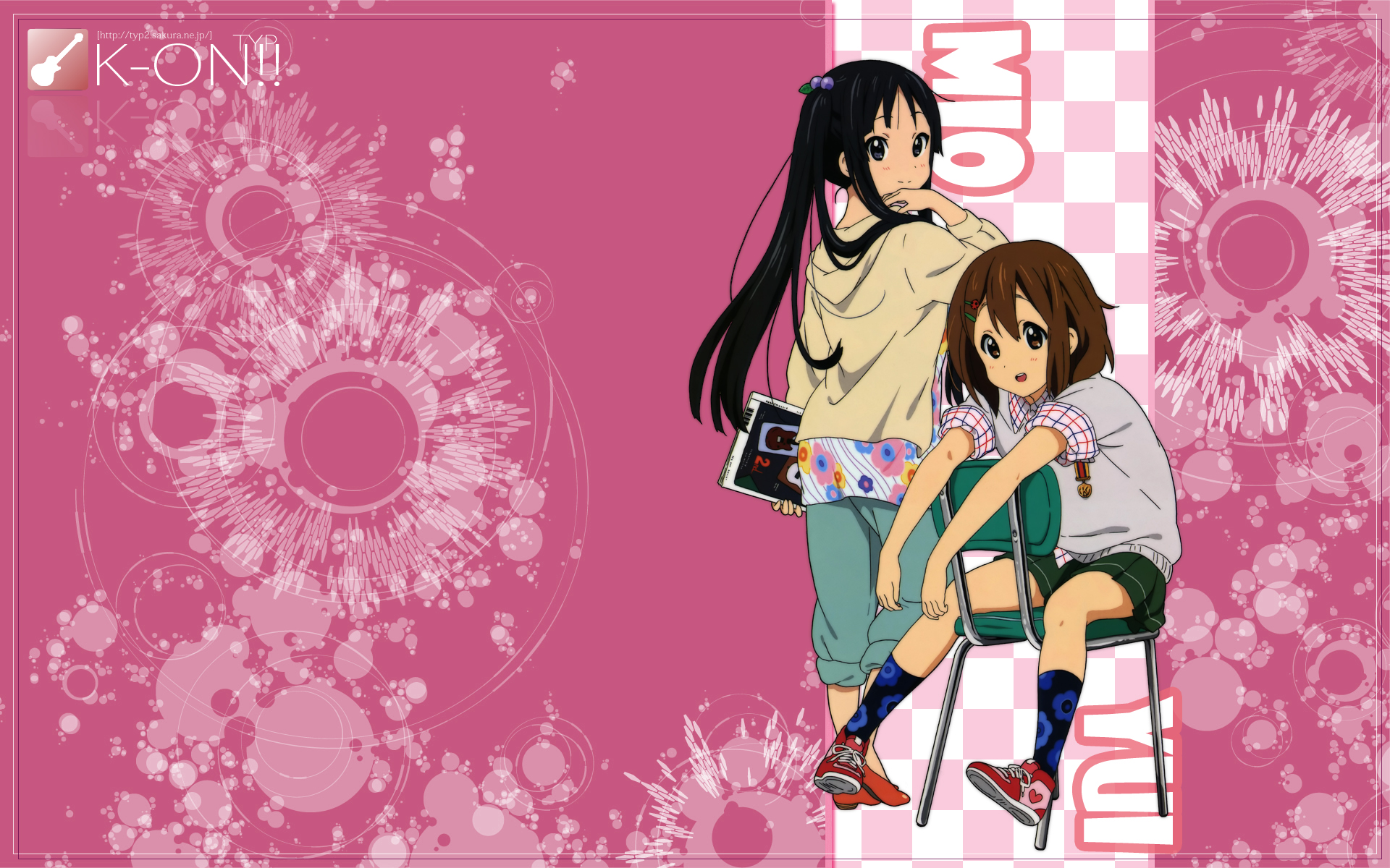 Обои K-On! - Yui на стуле рядом с Mio