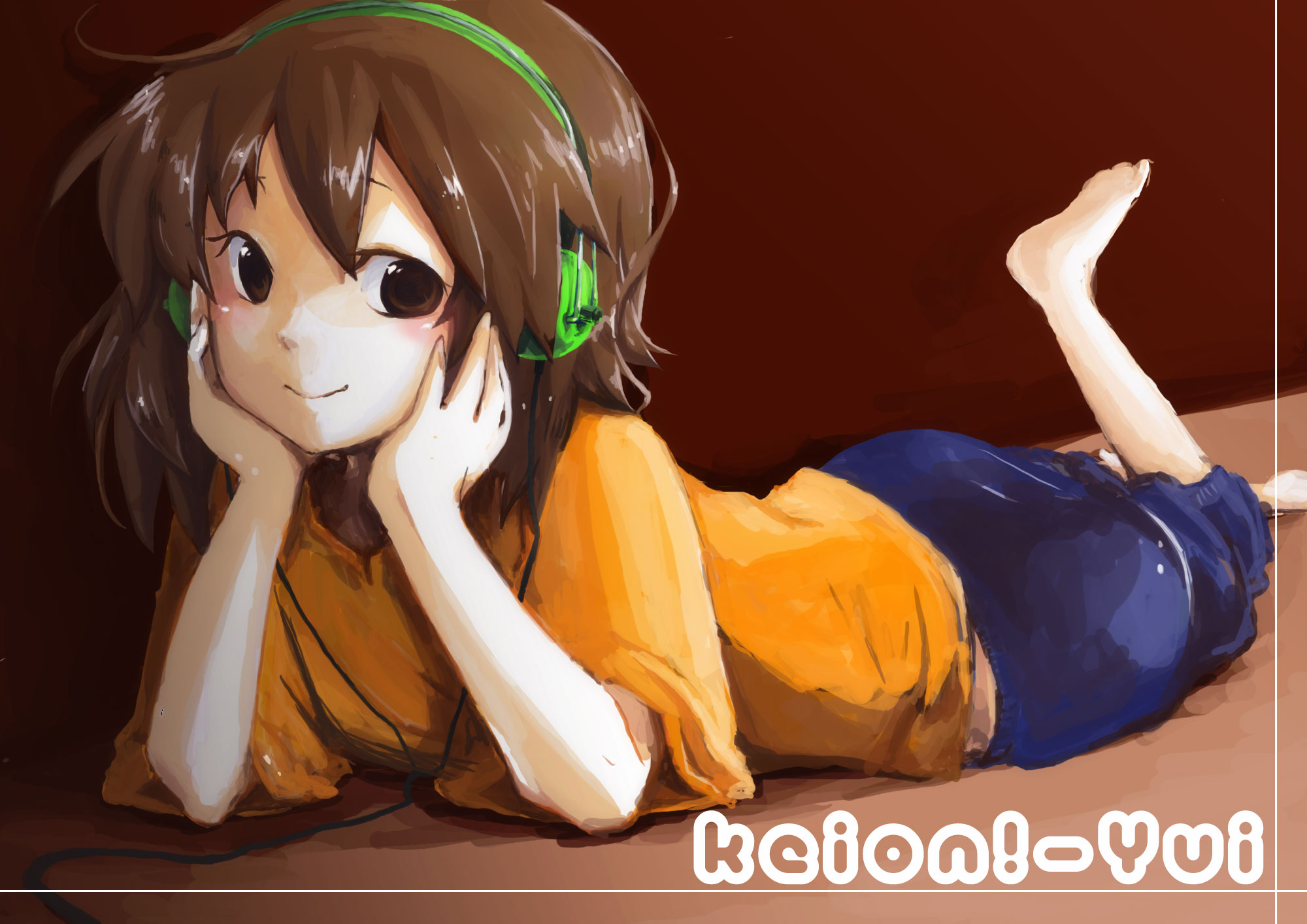 Похожие обои на K-On! - Yui в зеленых наушниках на полу: