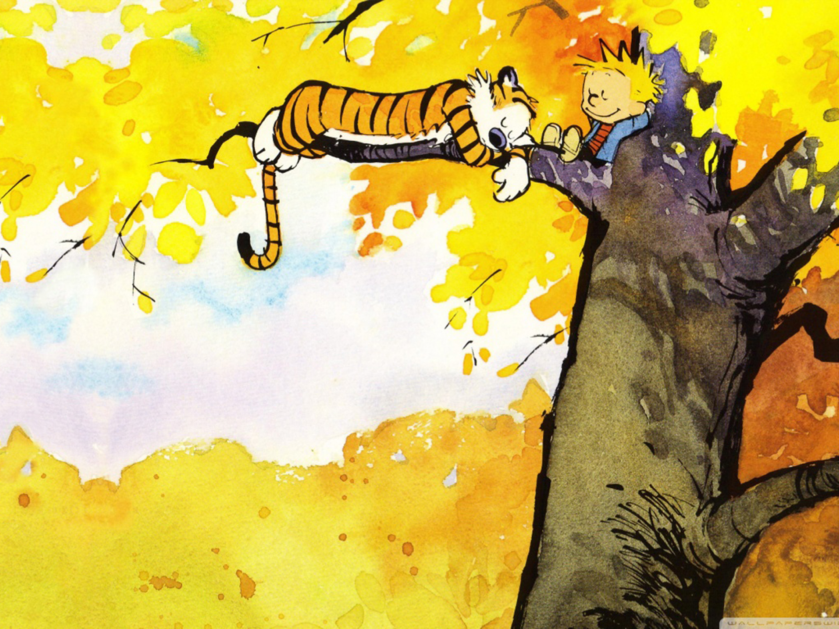 Похожие обои на Кальвин и Хоббс на осеннем дереве: