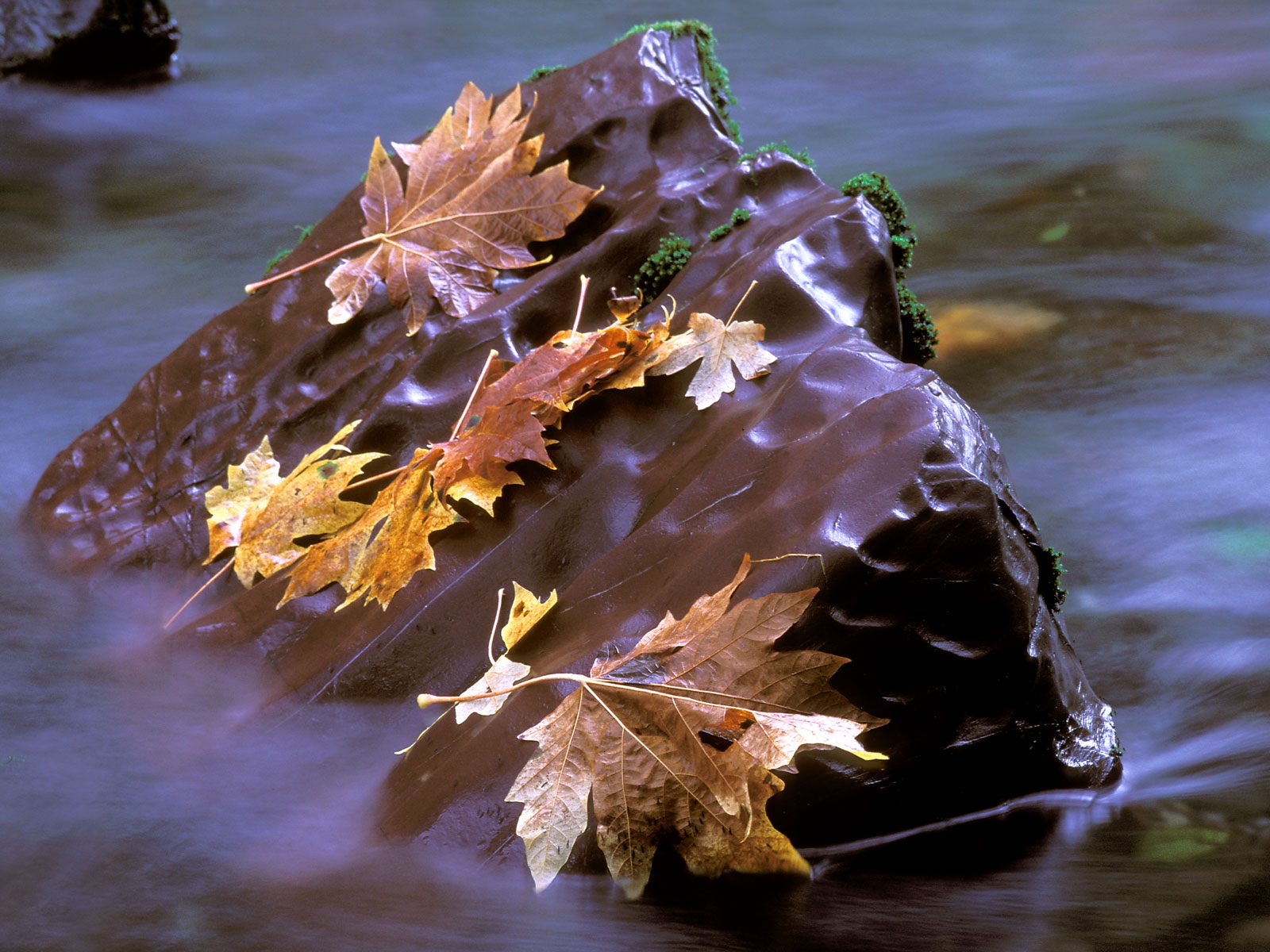 Скачать обои для рабочего стола Камень в листьях в воде и фото