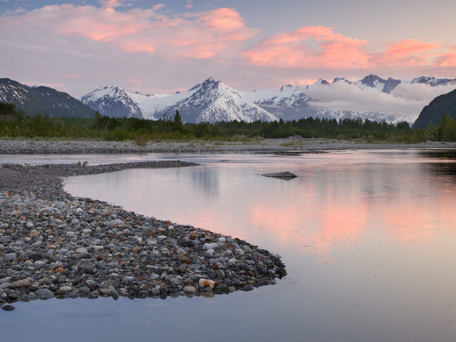 Скачать обои для рабочего стола Каменистый берег реки на аляске и фото