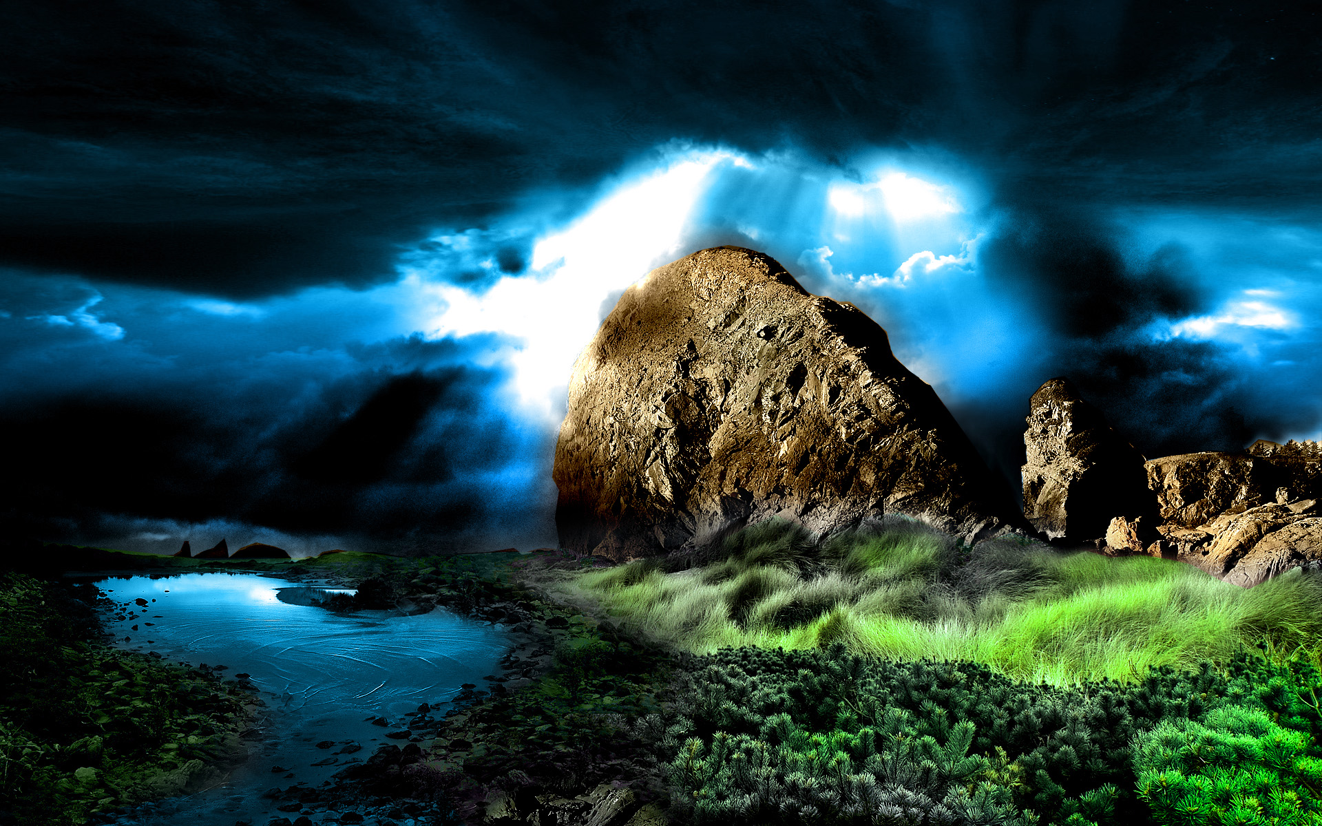 Скачать обои для рабочего стола Каменная глыба под темным грозовым небом и фото