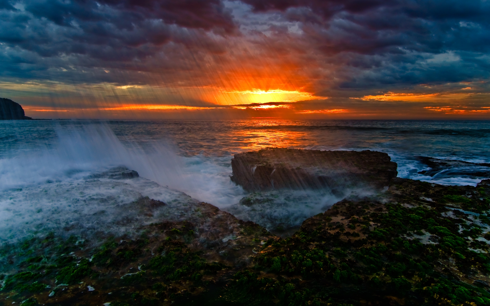 Обои Камни, море и закат