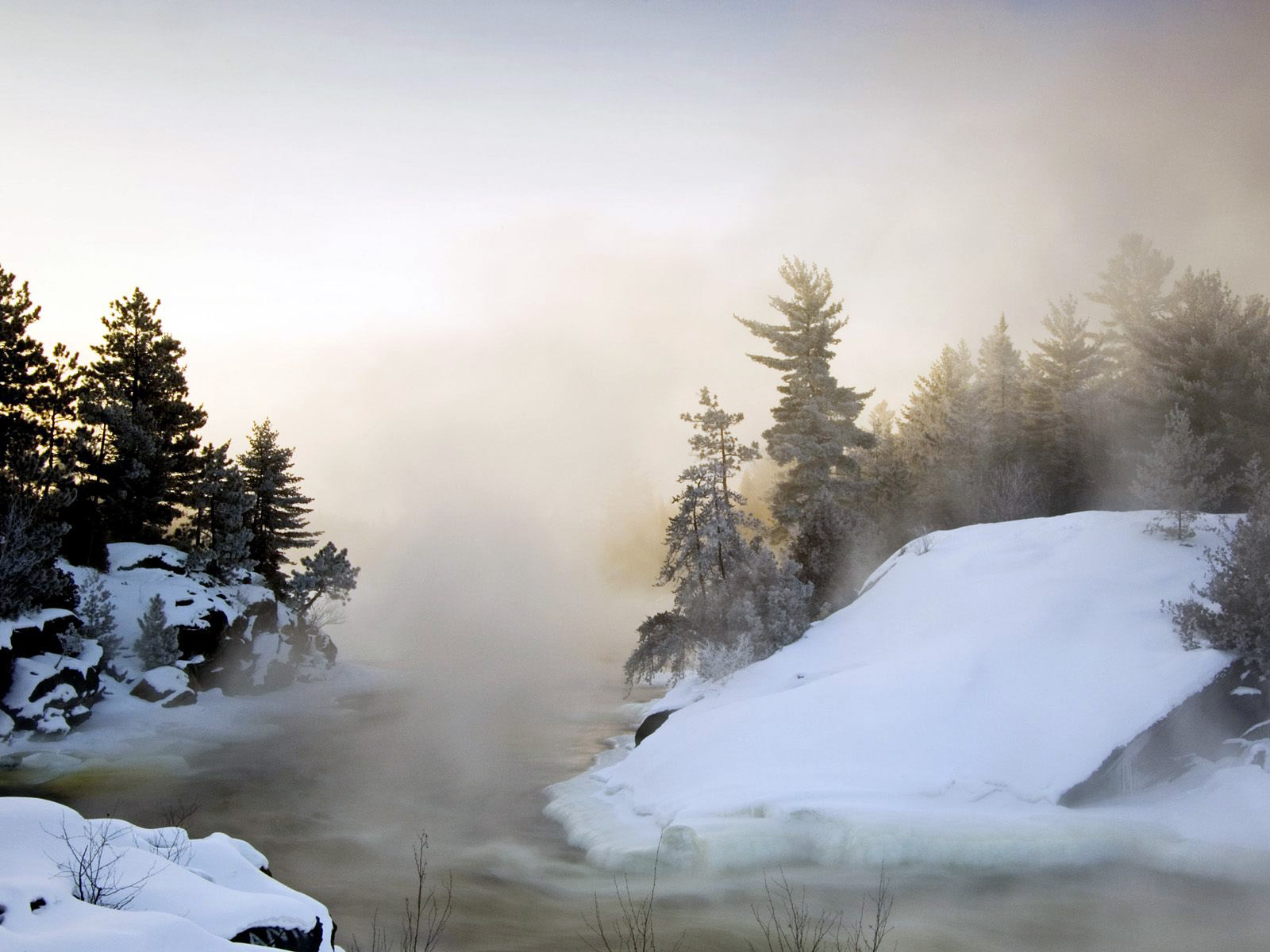 Скачать обои для рабочего стола Канада, Онтарио, река на восходе и фото