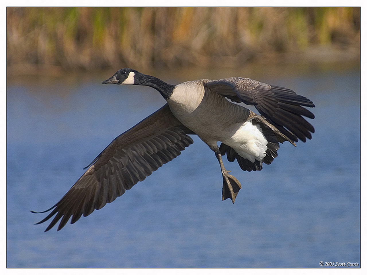 Скачать обои для рабочего стола Канадская казарка раскинула крыло над водой и фото