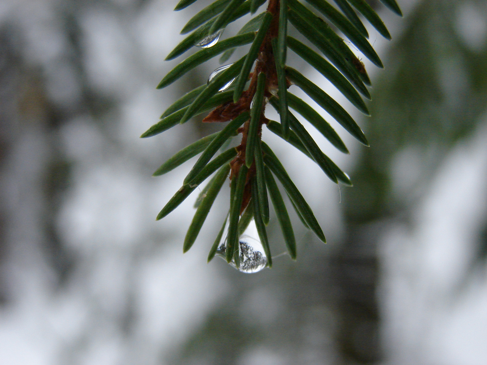 Скачать обои для рабочего стола Капелька на веточке ели и фото