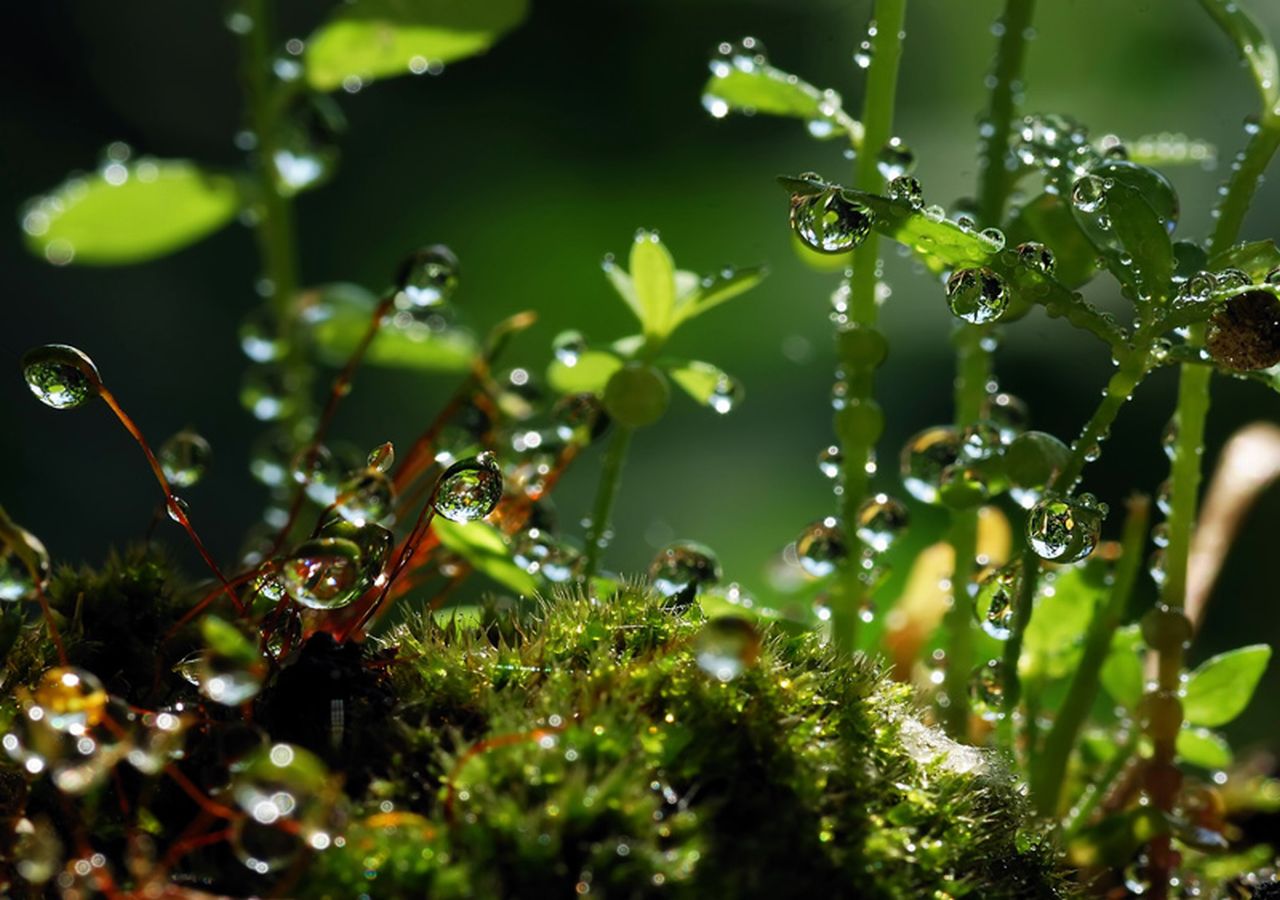 Похожие обои на Капли росы на молодой травке: