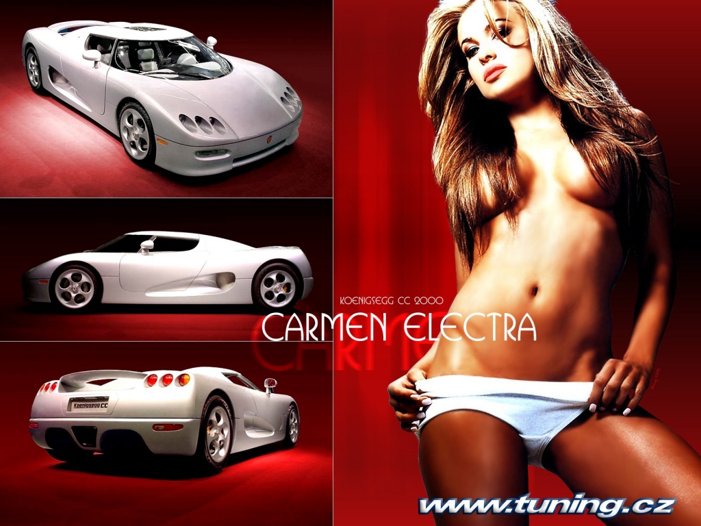 Скачать обои для рабочего стола Кармен електра возле тачки и фото