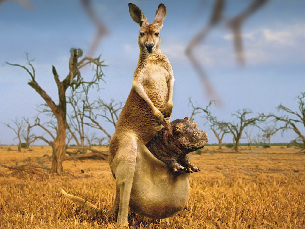 Похожие обои на Кенгуру и бегемот: