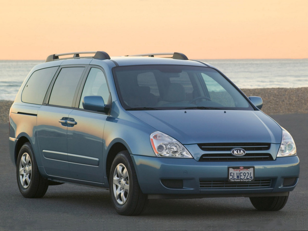 Скачать обои для рабочего стола KIA Carnivalна фоне моря и фото