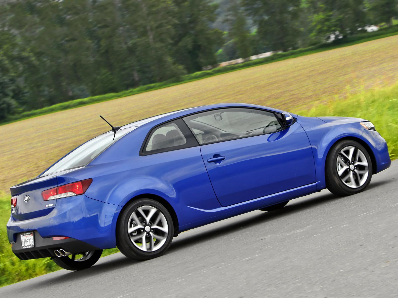 Скачать обои для рабочего стола KIA Koup синего цвета вид сбоку и фото