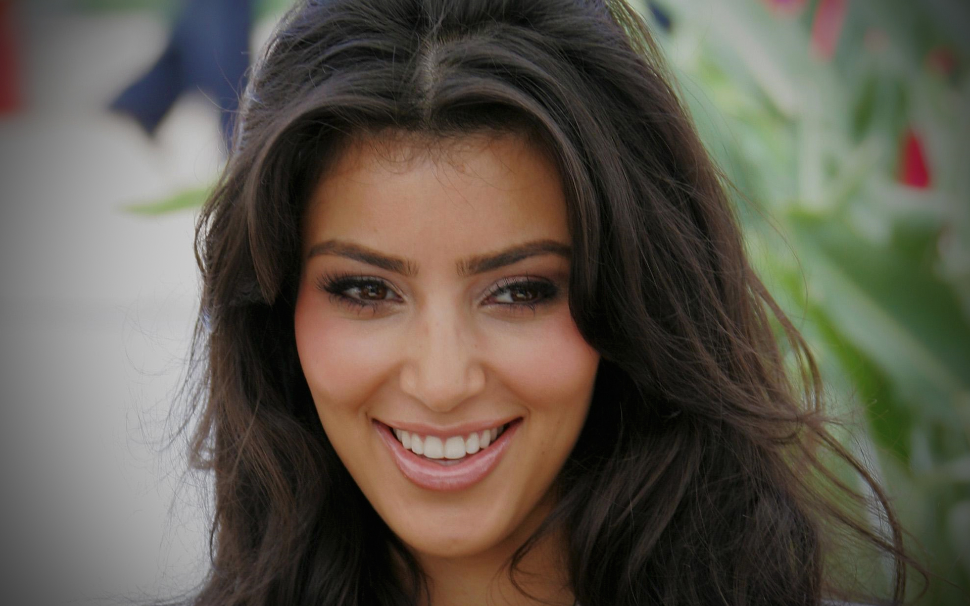 Скачать обои для рабочего стола Kim kardashian девушка с улыбкой и фото