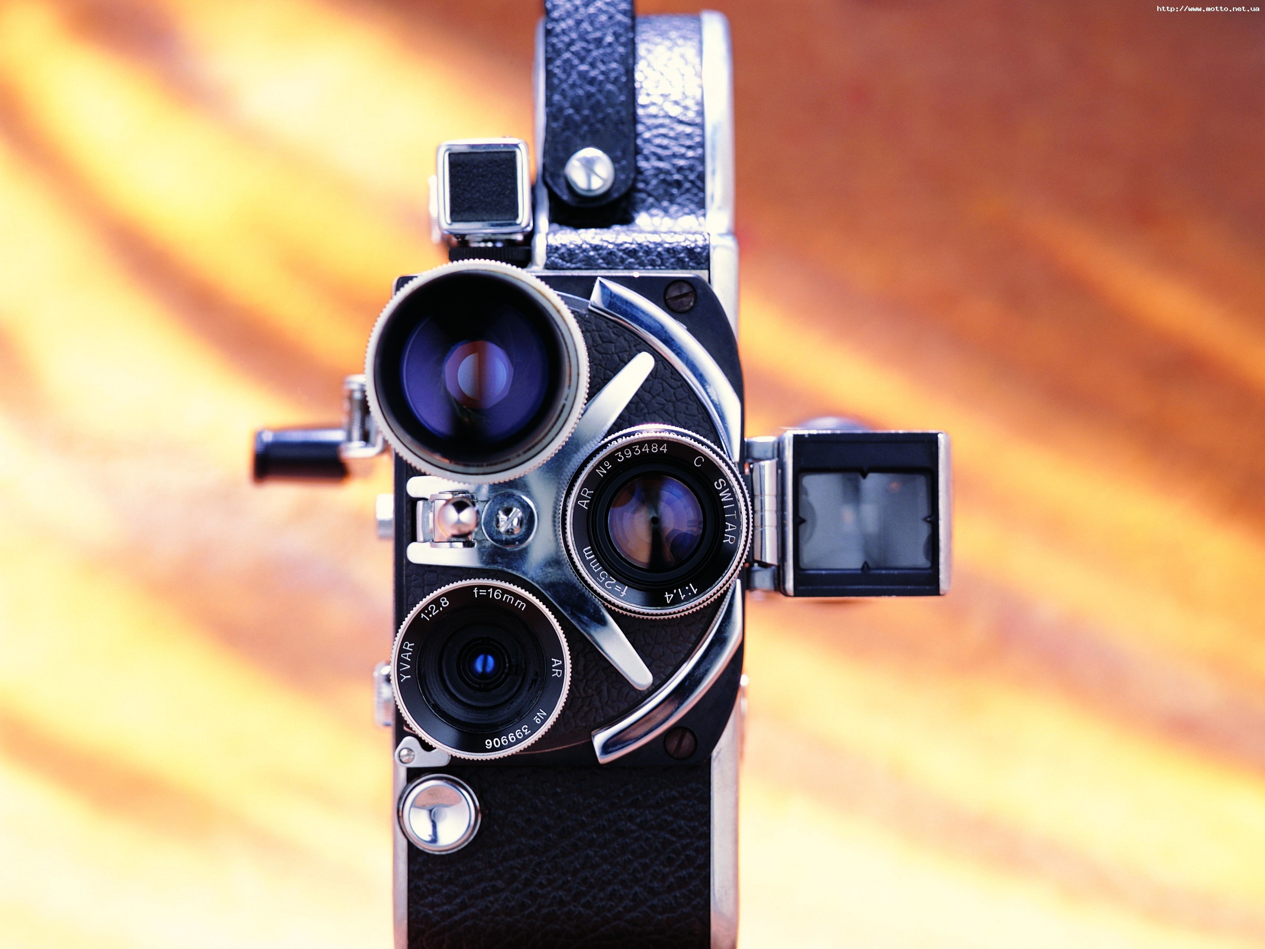 Скачать обои для рабочего стола Кинокамера Switar с тремя обьективами вид спереди и фото