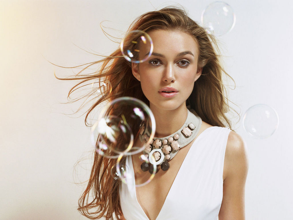 обои для рабочего стола: Кира Найтли (Keira Knightley) и мыльные пузыри