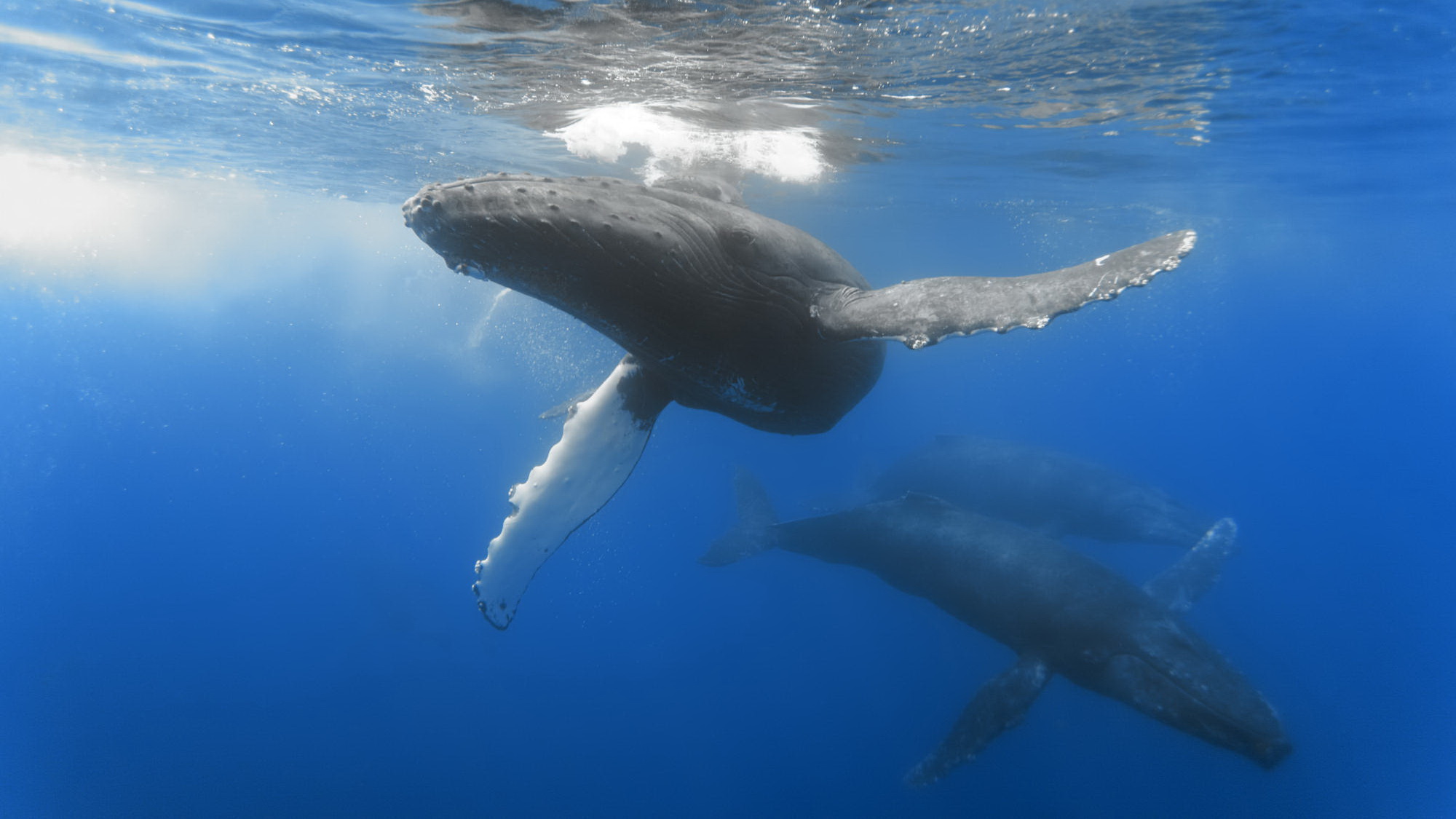 Скачать обои для рабочего стола Киты на морских глубинах и фото