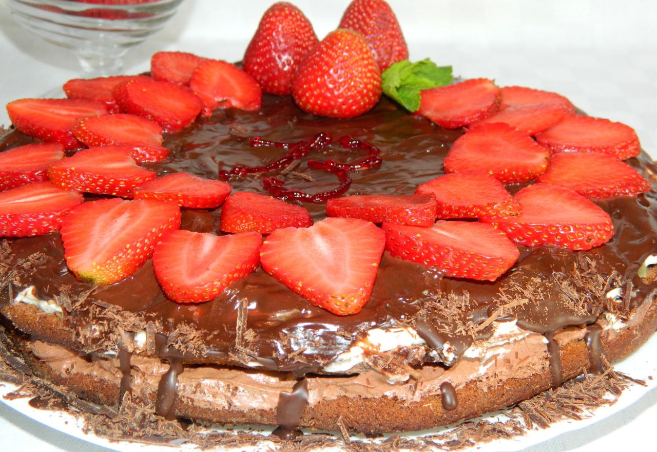 Похожие обои на Клубнично-шоколадный домашний торт: