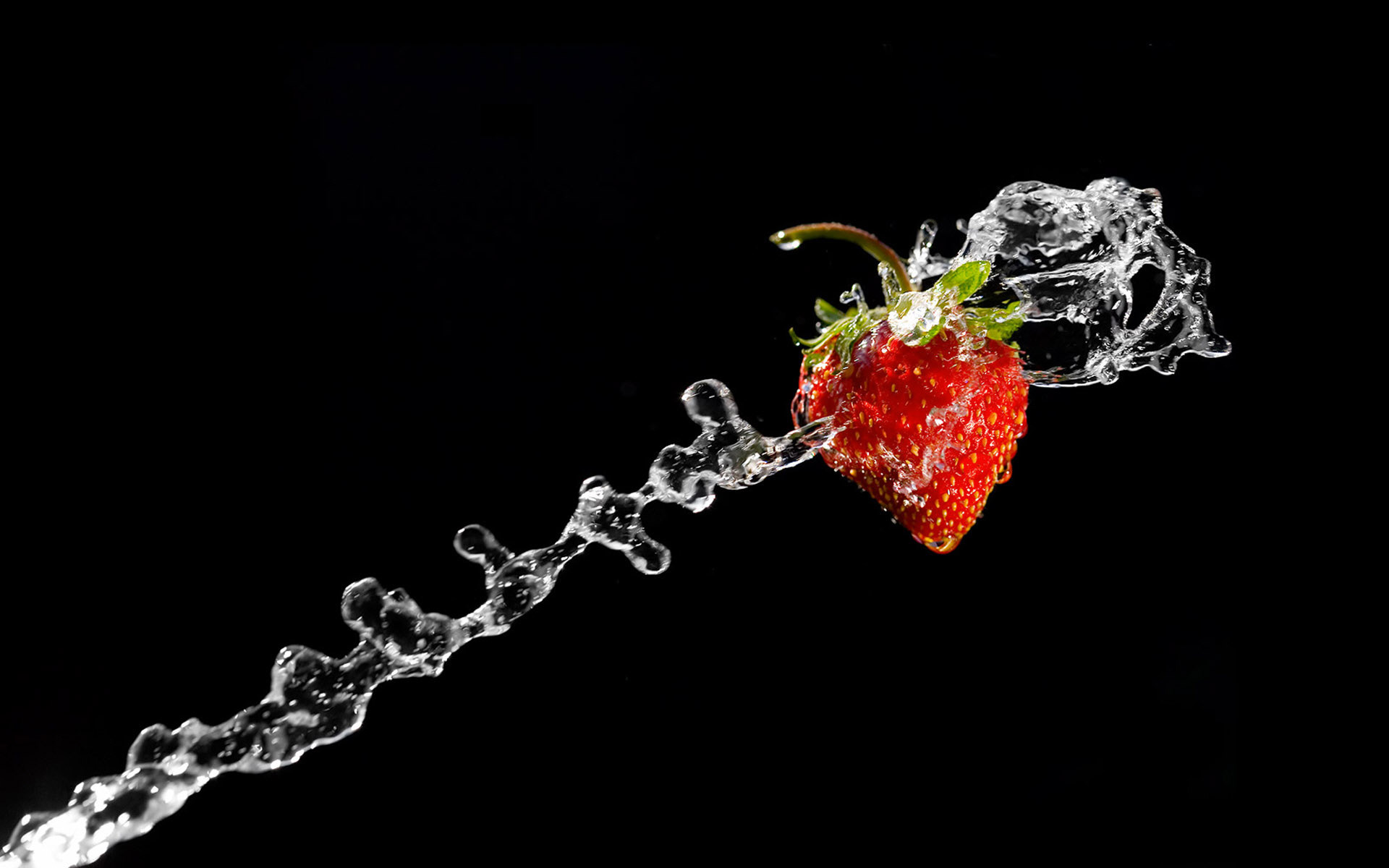Обои Клубника и струя воды на черном фоне
