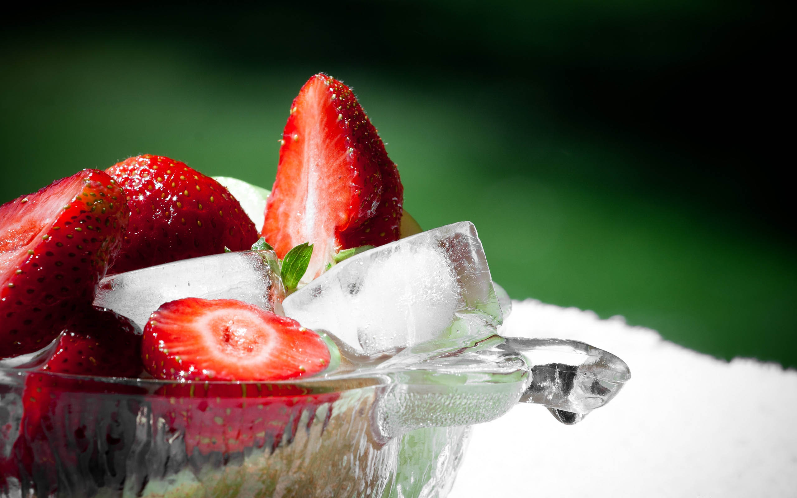 Скачать обои для рабочего стола Клубника со льдом и фото