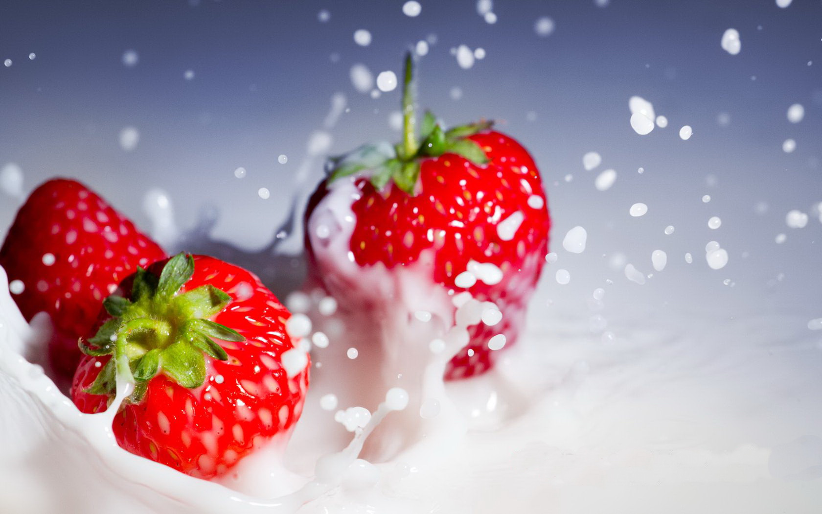 Скачать обои для рабочего стола Клубника в молоке и фото