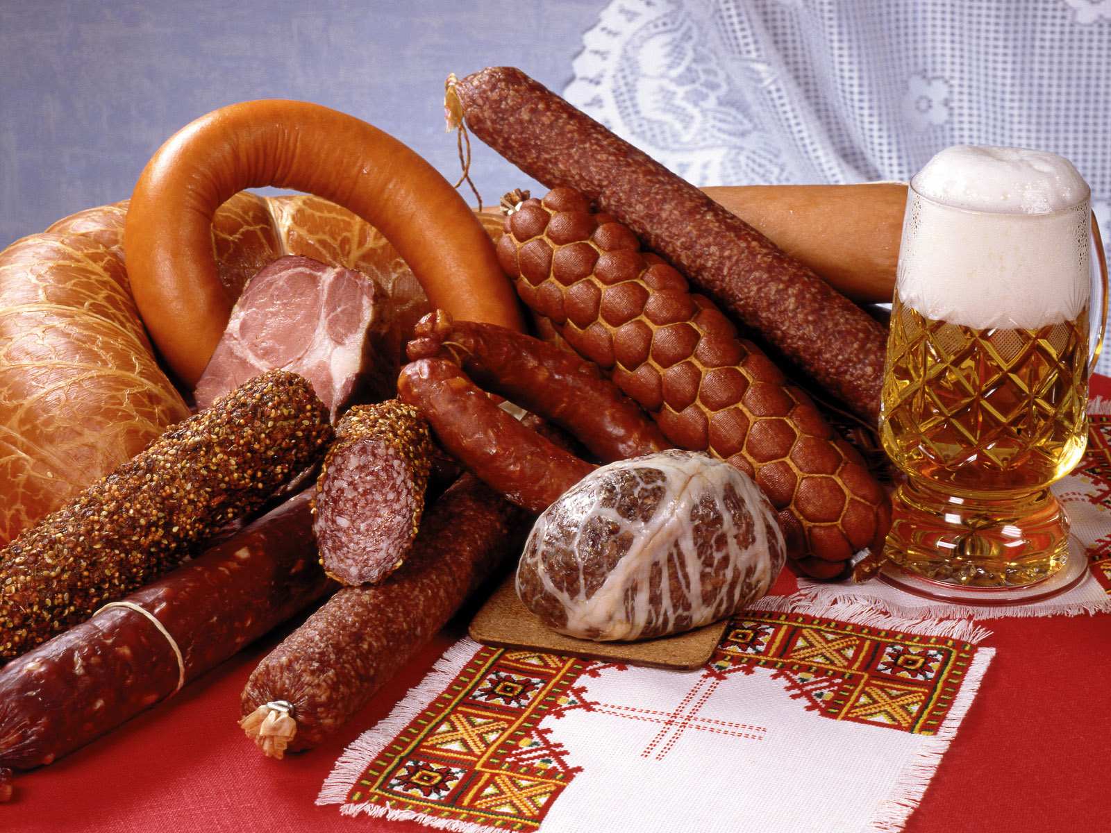 Скачать обои для рабочего стола Колбаса и пивко и фото