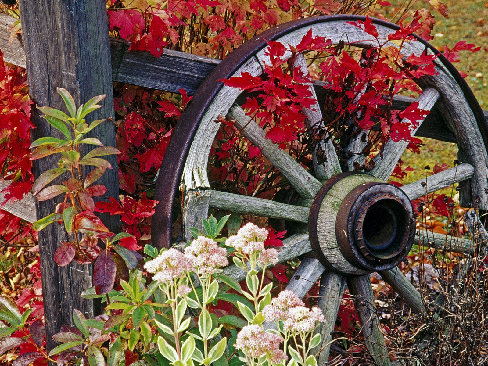 Скачать обои для рабочего стола Колесо телеги в цветах и фото