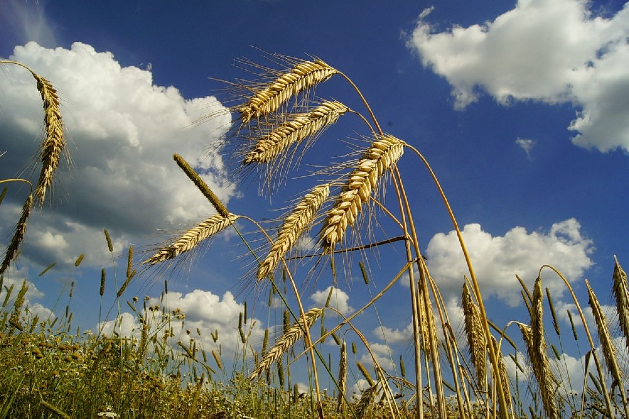 Скачать обои для рабочего стола Колосья, небо, облака и фото