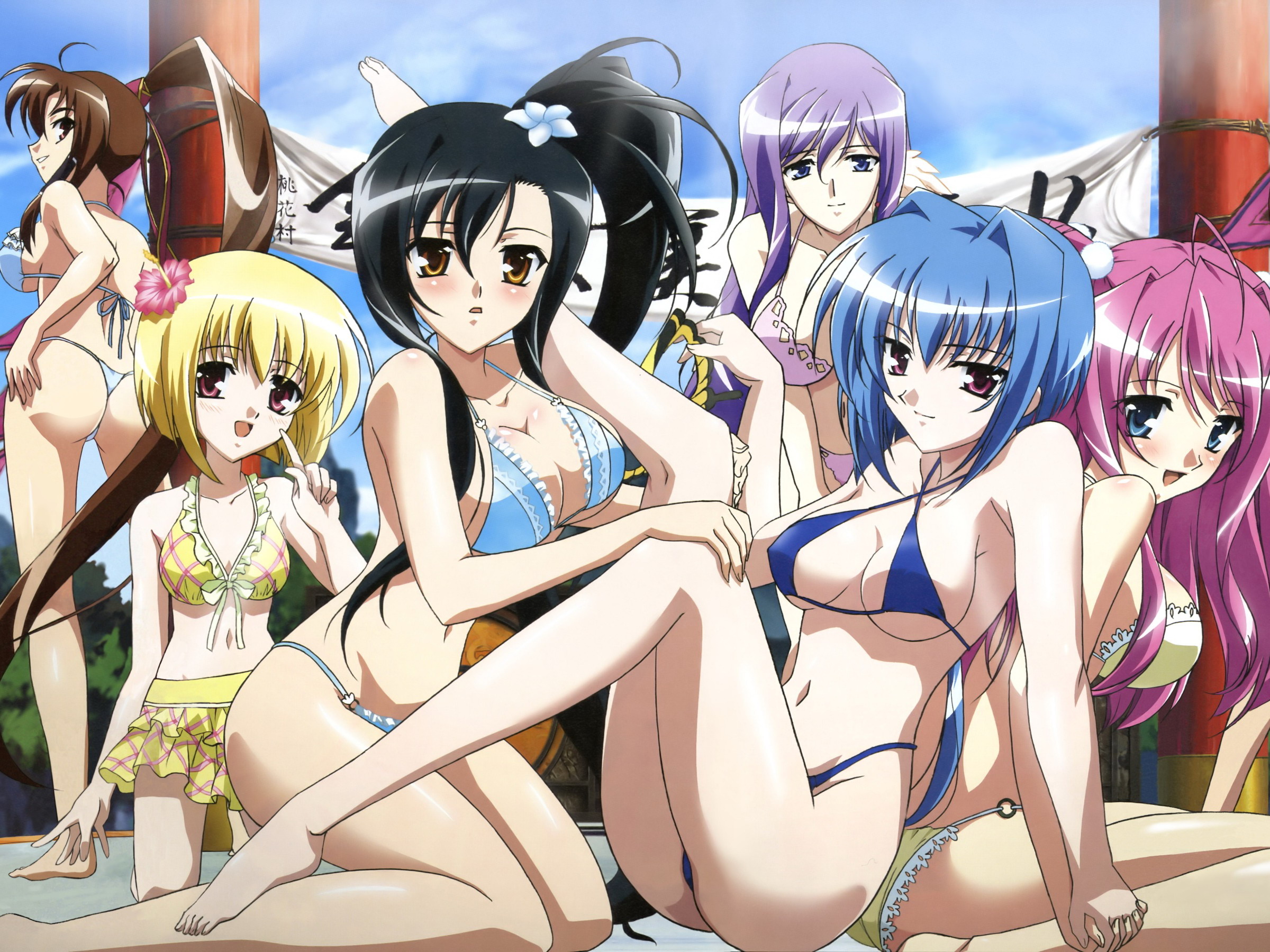 Похожие обои на Компания девушек в купальникaх из аниме: