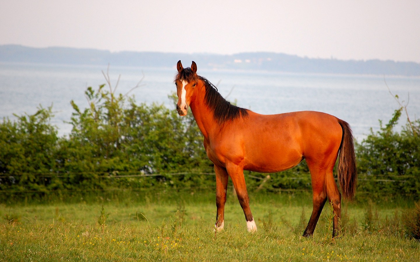 Скачать обои для рабочего стола Конь на лоне природы и фото