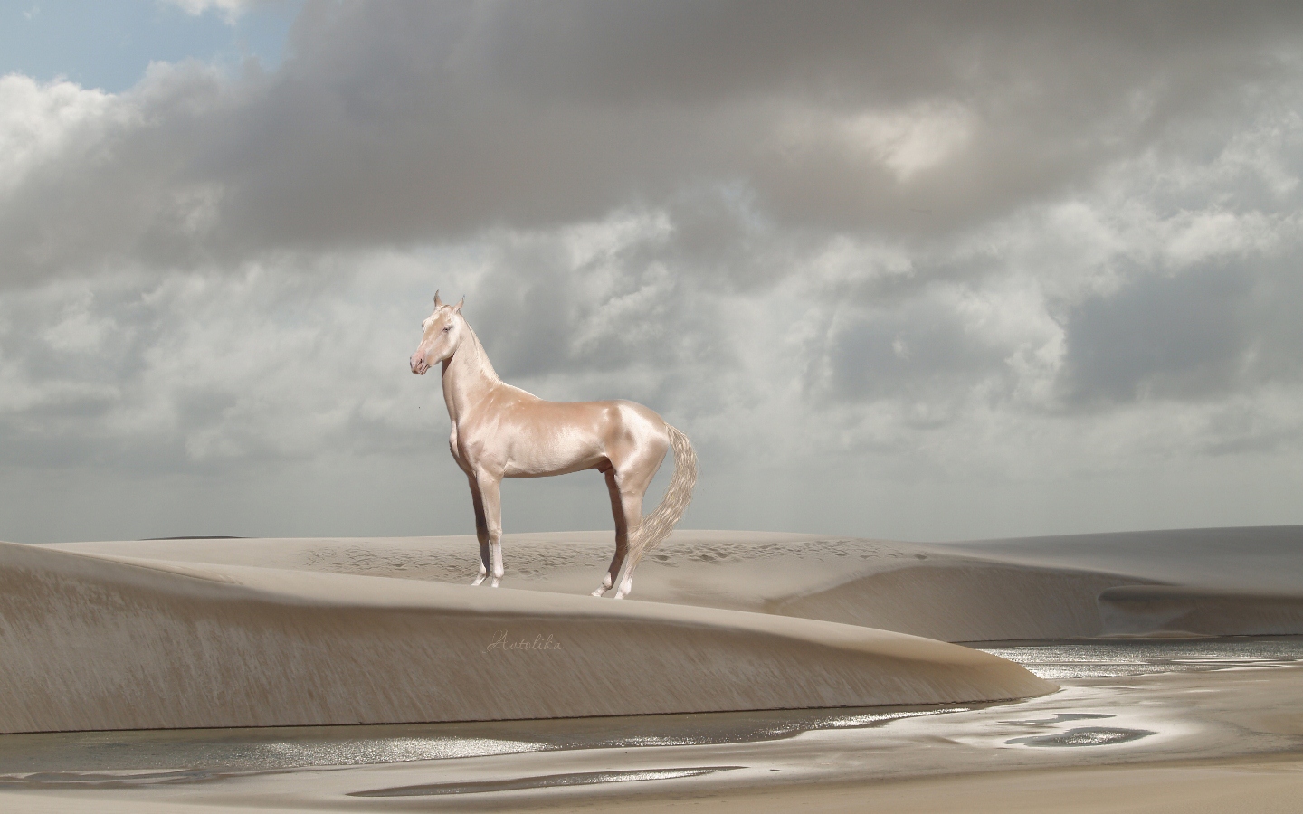 Скачать обои для рабочего стола Конь золото пустыни и фото