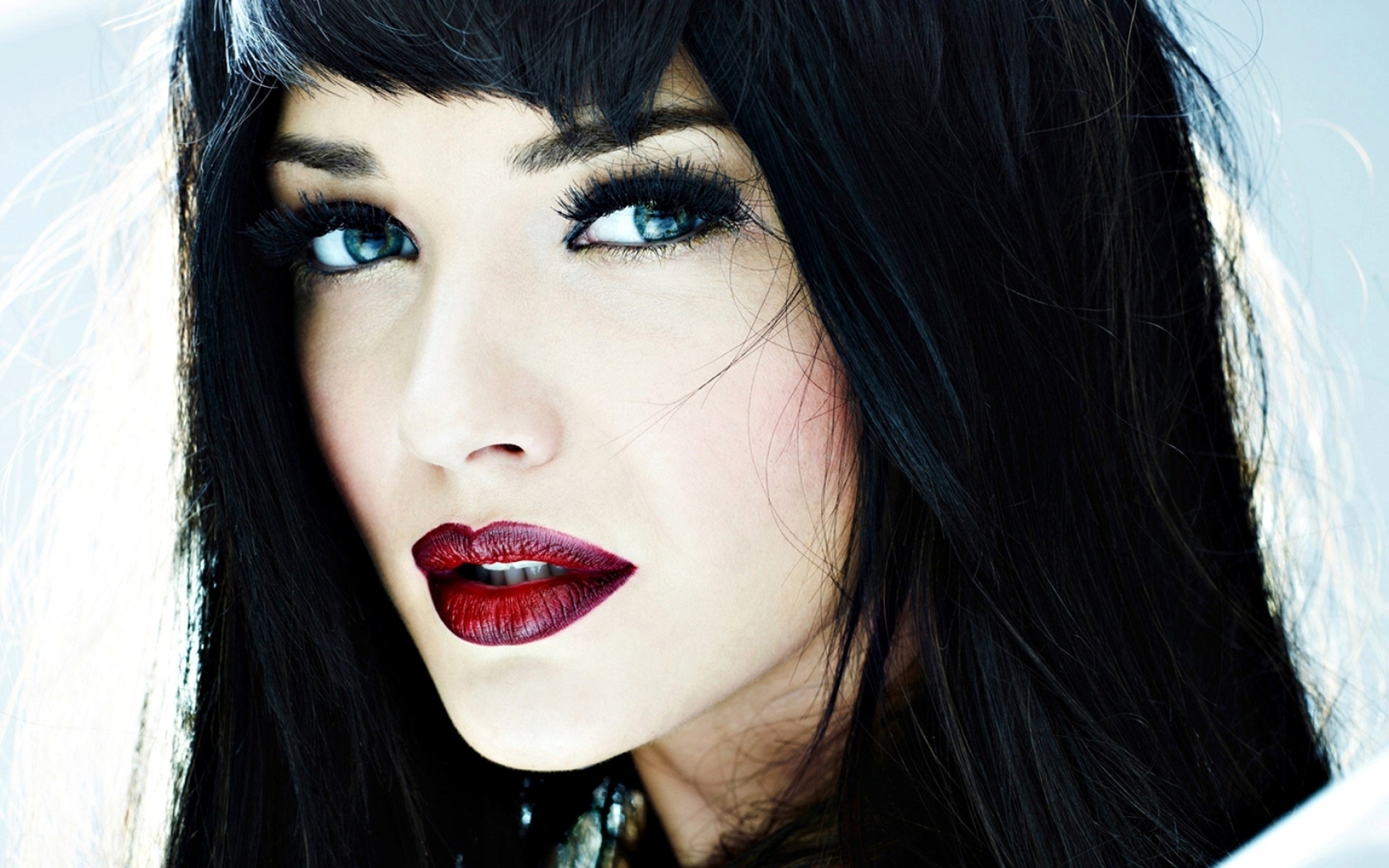 Скачать обои для рабочего стола Контрасная девушка с темными губами и фото