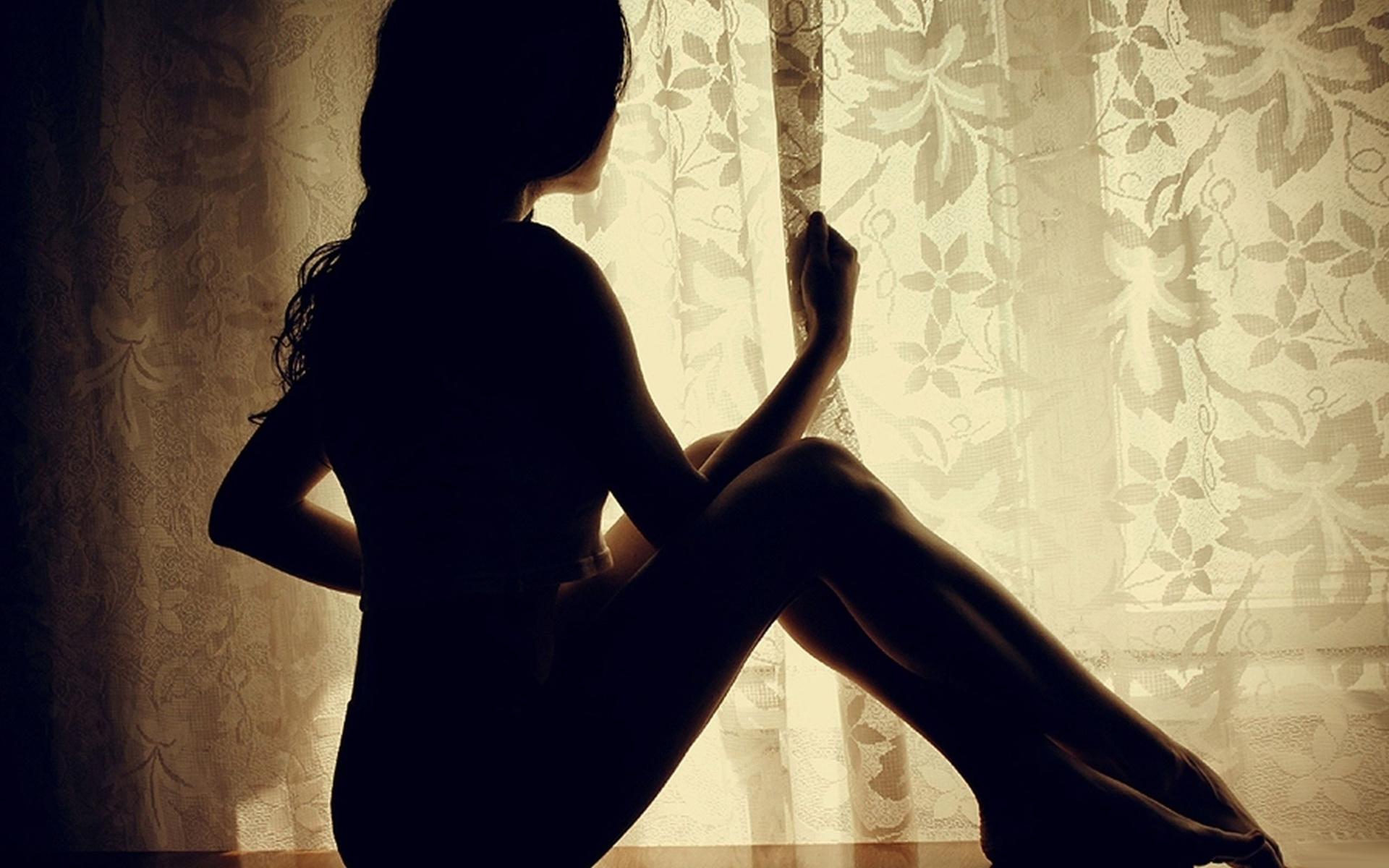Скачать обои для рабочего стола Контур девушки на фоне окна и фото