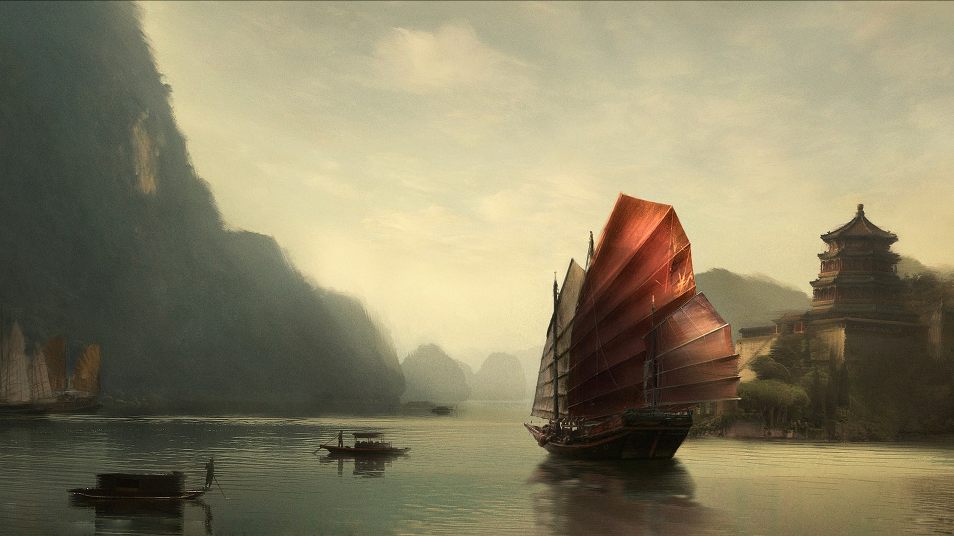 Скачать обои для рабочего стола Корабли и поромы на реке и фото