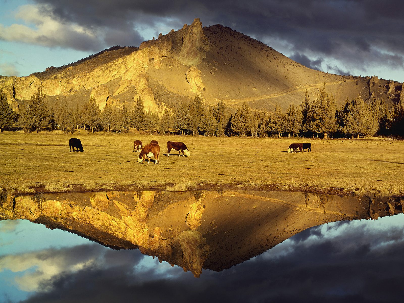 Скачать обои для рабочего стола Коровы на фоне гор и фото
