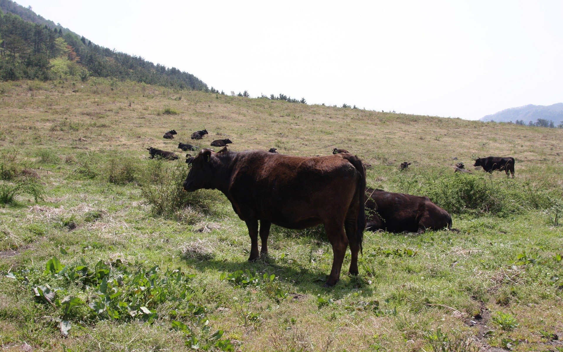Скачать обои для рабочего стола Коровы на лугу у леса и фото