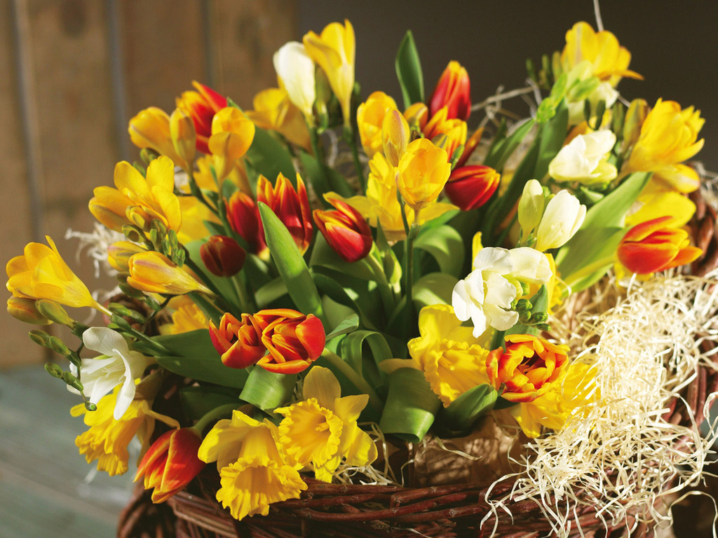 Скачать обои для рабочего стола Корзина тюльпанов и фото