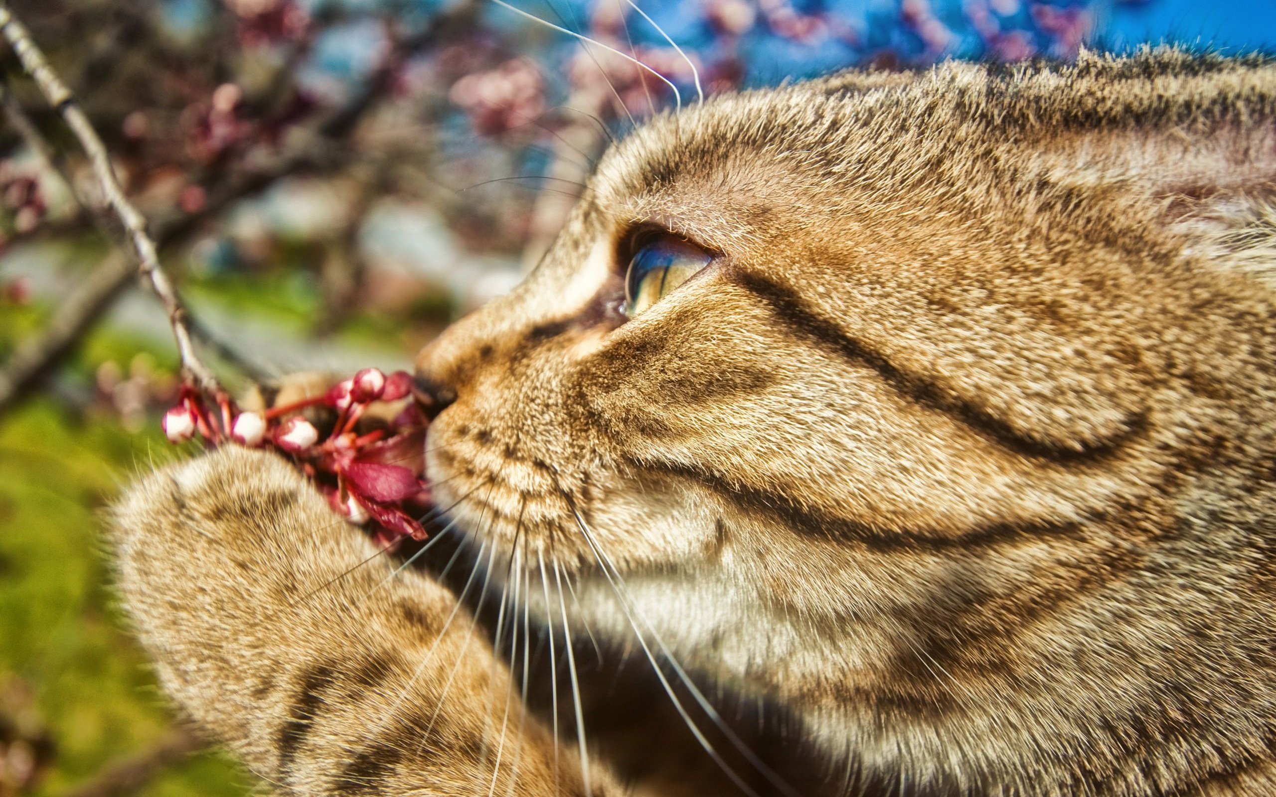 Скачать обои для рабочего стола Кошка и рябина и фото