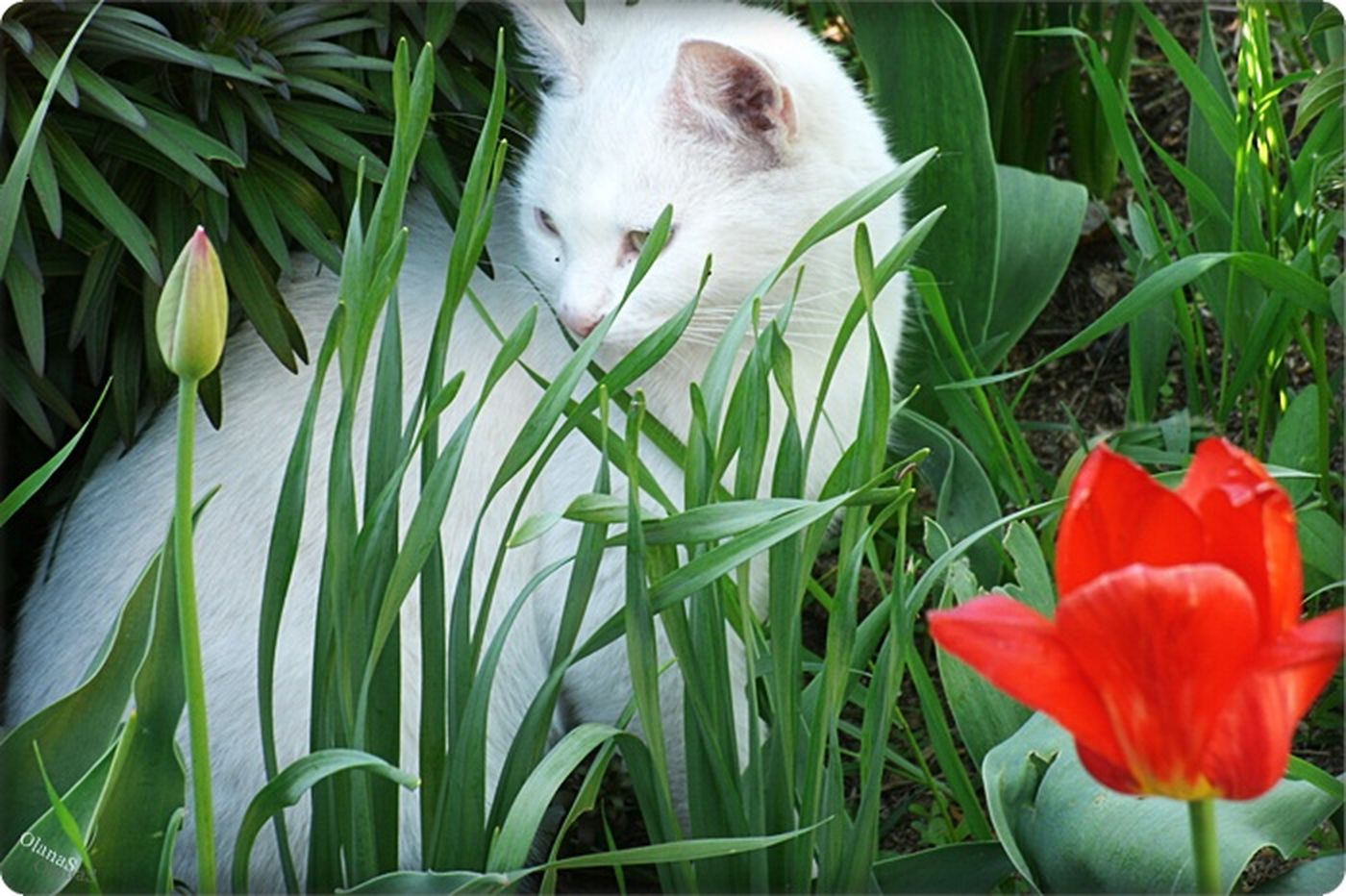 Похожие обои на Кошка и тюльпаны: