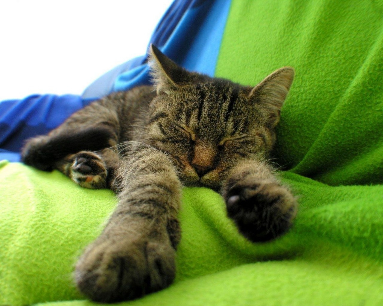 Скачать обои для рабочего стола Кошка на полотенцах и фото