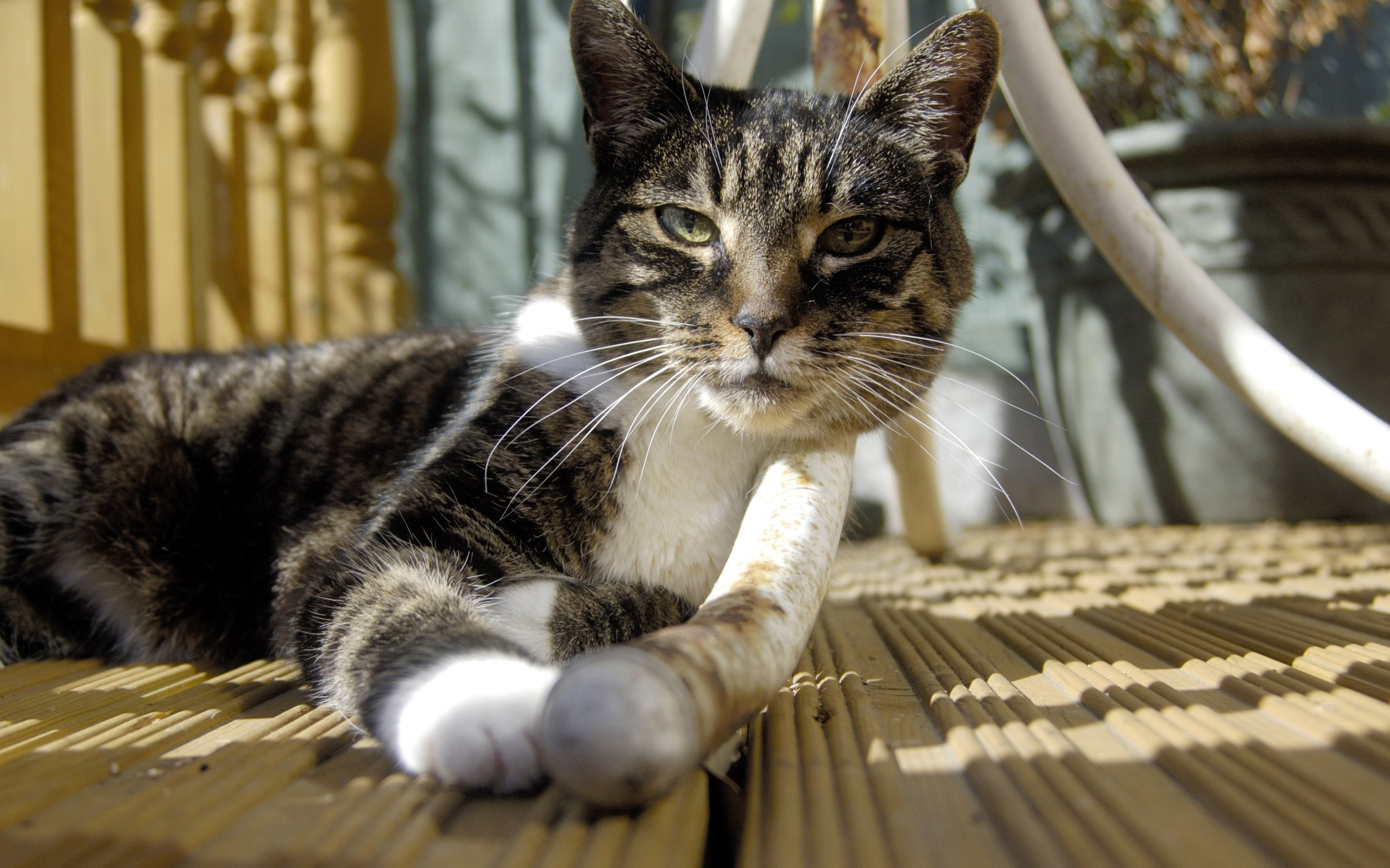 Скачать обои для рабочего стола Кошка на солнышке и фото