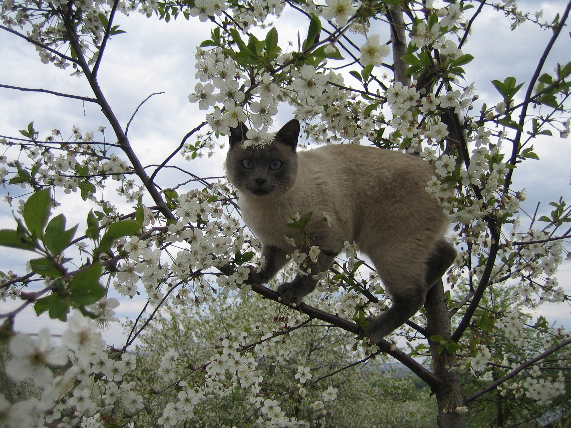 Скачать обои для рабочего стола Кошка на ветке и фото