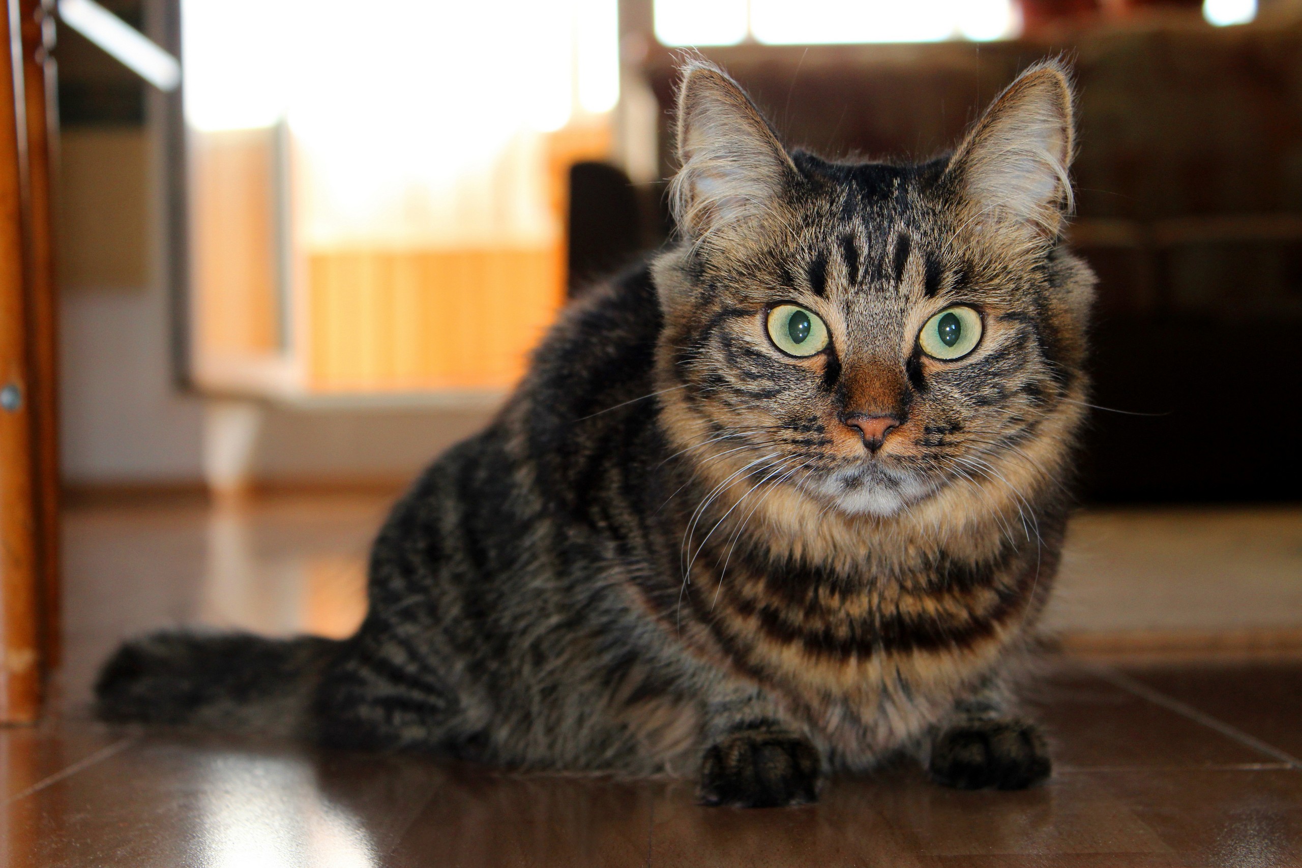 Скачать обои для рабочего стола Кошка широко открыв глаза и фото