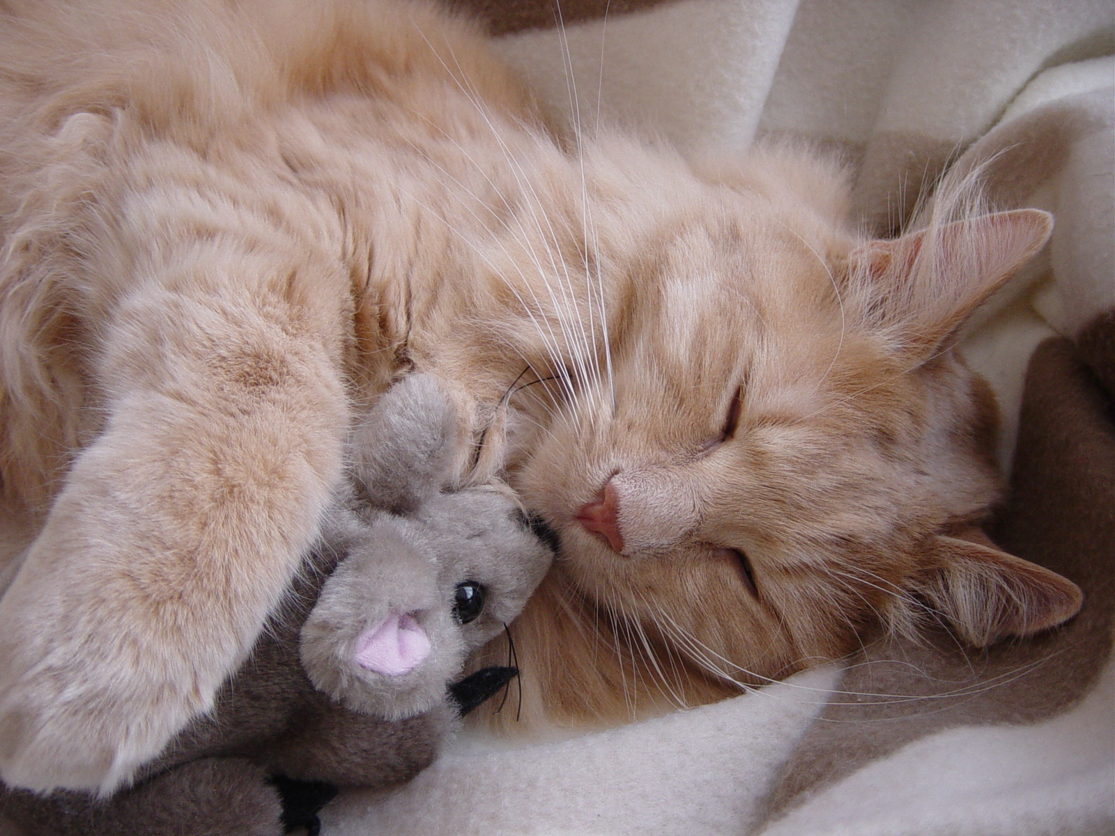 Похожие обои на Кошка спит с игрушечной мышкой: