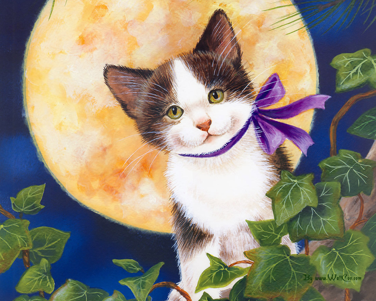 Скачать обои для рабочего стола Кошка в шляпе и фото