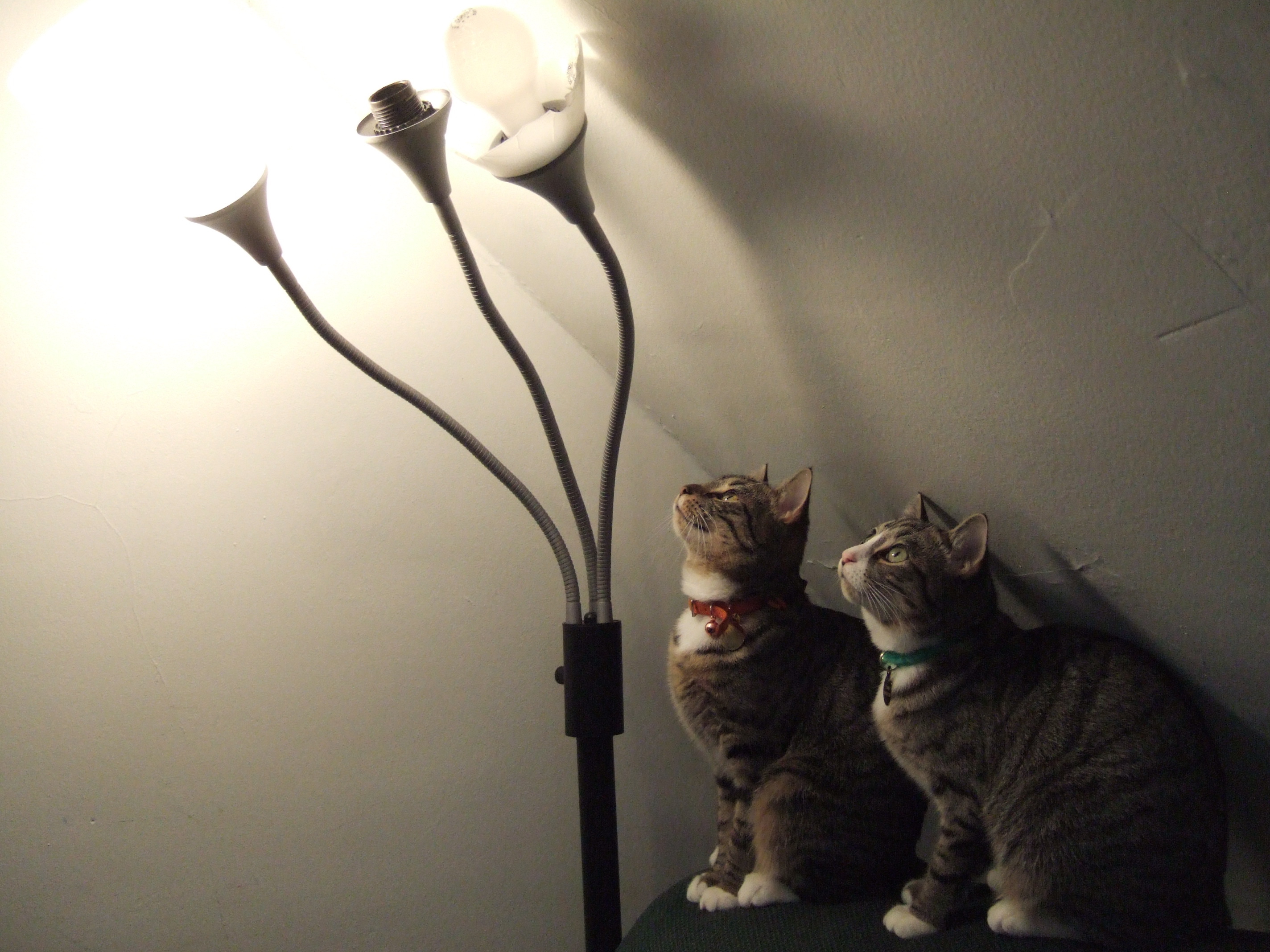 Скачать обои для рабочего стола Кошки и причудливая лампа и фото